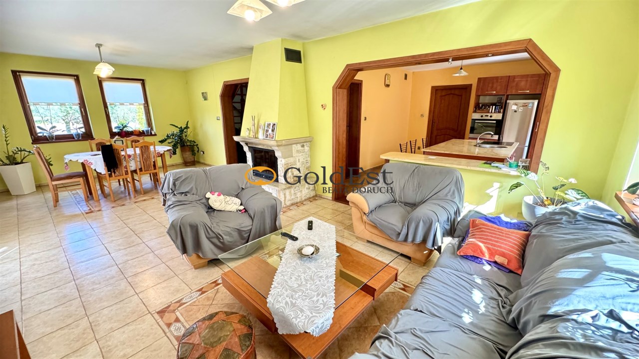 Ogrzewanie piecem na pellet i drewno, dodatkowo w salonie wybudowany jest kominek z marmuru i piaskowca z płaszczem wodnym rozprowadzonym na cały dom.