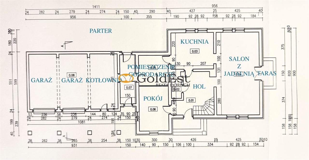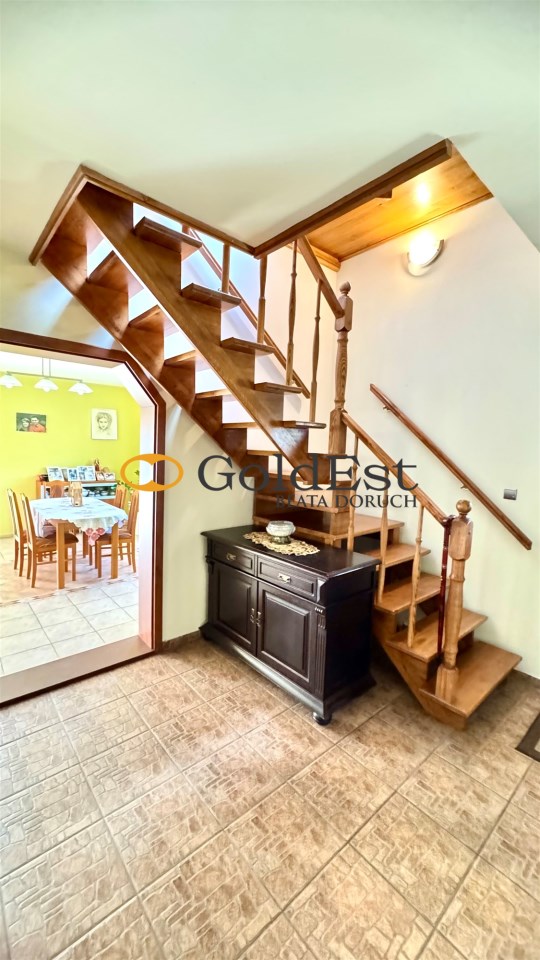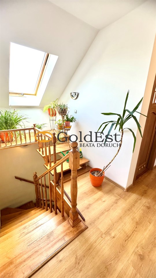 Na parterze ulokowany salon, jadalnia, kuchnia, pomieszczenie gospodarcze, łazienka, pokój oraz hol. Na górze trzy pokoje ( w tym jeden z dużą garderobą ), łazienka i hol.