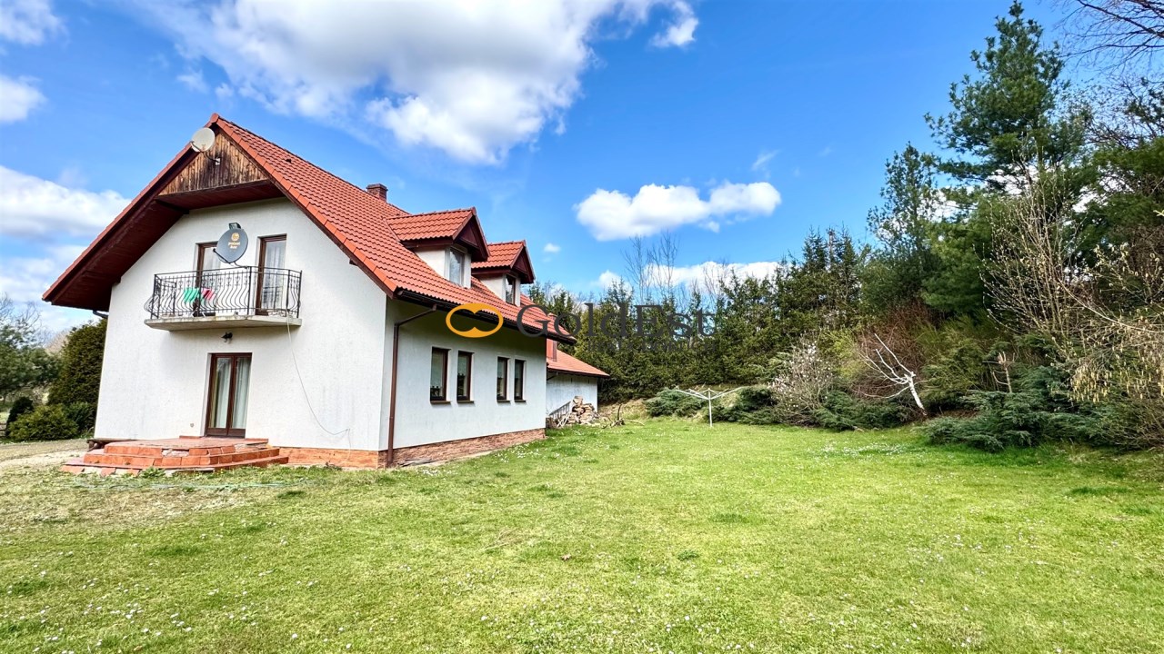 W zacisznym miejscu położony dom wolnostojący na działce 23 ary z widokiem na staw i wśród zieleni.