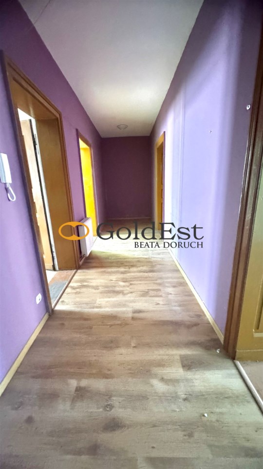 Powierzchnia mieszkania to 91,2m2, na co składają się trzy pokoje, kuchnia, łazienka i przedpokój. Mieszkanie wymaga częściowego remontu. Atutem jest rozprowadzone ogrzewanie gazowe (piec dwufunkcyjny) oraz wymienione okna w 2019 roku. Na podłodze panele oraz odkryte deski drewniane, które wraz z drewnianymi drzwiami nadają przyjemny klimat tej nieruchomości. Wysokość 3 metry.