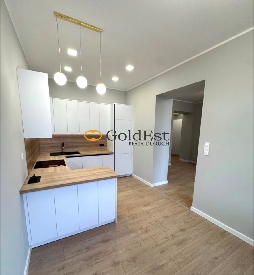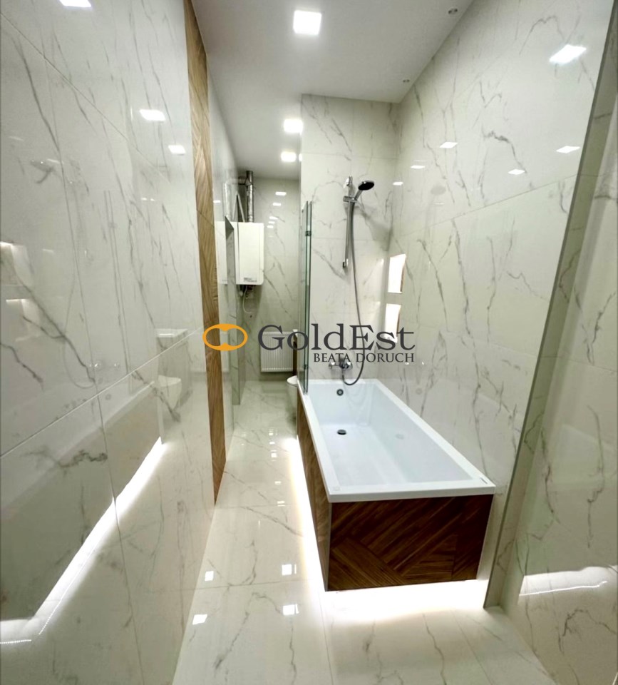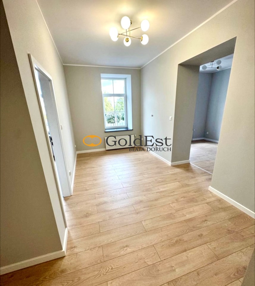 Wewnątrz wymienione wszystkie instalacje, na podłogach położone nowe panele i terakota. Zamontowane nowe drzwi. W kuchni nowa zabudowa meblowa wraz ze sprzętem AGD (lodówko-zamrażalką, piekarnikiem, płytą indukcyjną, zmywarką). W łazience nowa armatura oraz zabudowa pod umywalkę. W przedpokoju szafa przesuwna na wymiar.