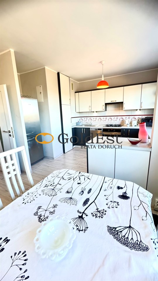 Mieszkanie w pełni umeblowane i wyposażone w niezbędne sprzęty AGD (zmywarka, lodówko-zamrażalka, pralka) oraz TV.