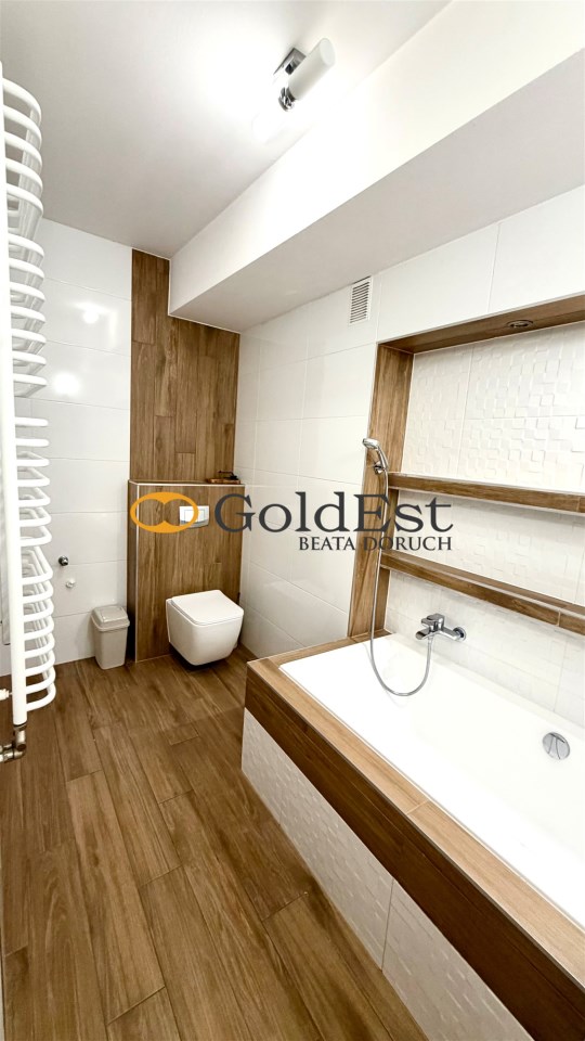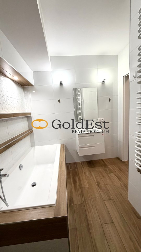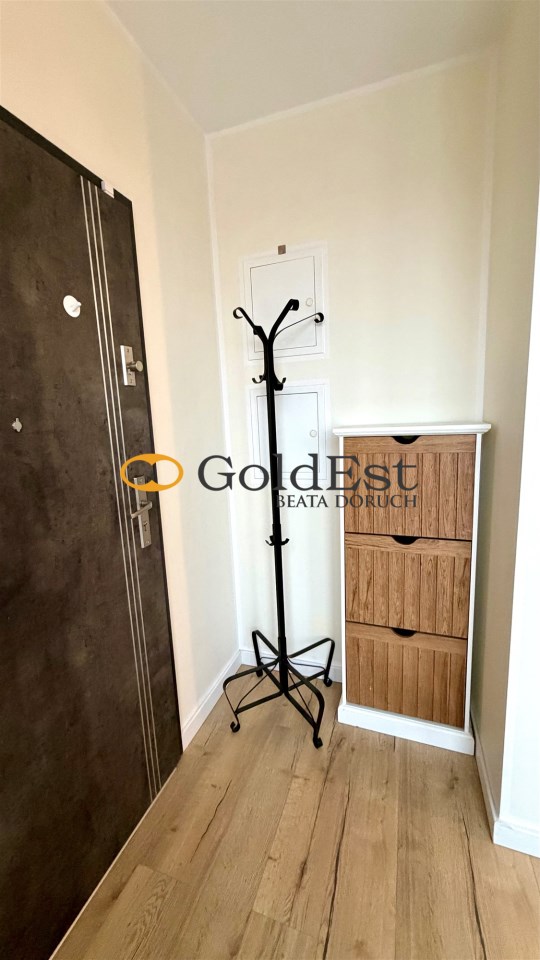 Apartament wyposażony w podstawowe meble: kuchnia w zabudowie wraz ze zmywarką, piekarnikiem, płytą indukcyjną, lodówko-zamrażalką. W łazience wanna, sedes, umywalka, pralka. Pozostałe meble widoczne na zdjęciach.